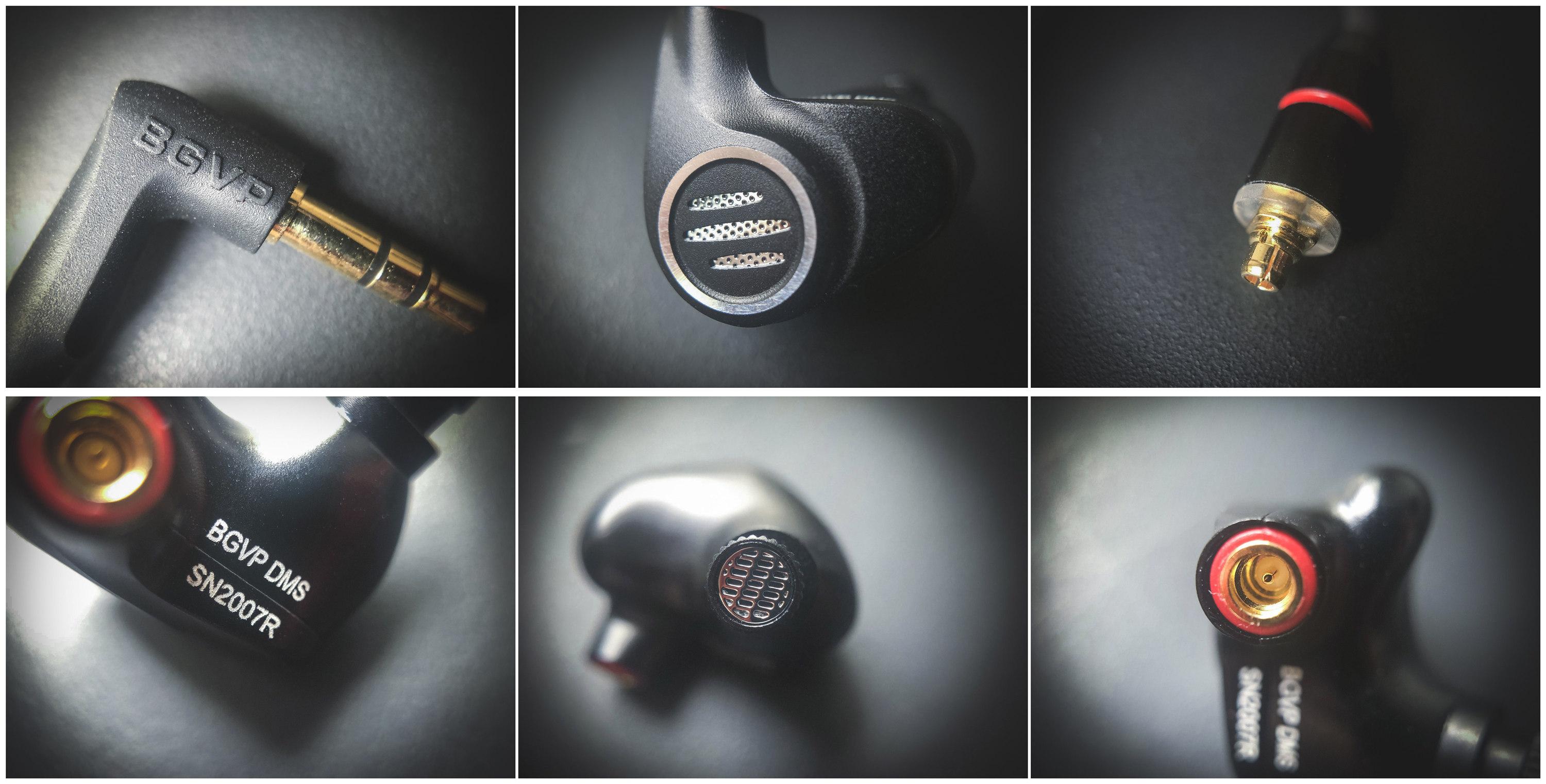相比可扔的极简包装,BGVP DMS在配件上的丰富和腔体的工艺实在是令人满意,DMS给人这种感觉会比之前的DS1更加明显,这种确实是比较少见的只把钱花在工艺上的厚道做法。用微距观察一下耳机的腔体工艺,CNC加工的铝镁合金腔体相当厚实,表面的喷砂和氧化处理非常的提升观感和手感。MMCX接口一丁点都不松动,左右耳的LR标示隐藏在序号最后一位,并且还能通过红蓝双色进行区分。高纯度单晶铜镀银线材包裹的TPE材质很粘手但不沾灰,这个值得点赞。不过与之比较L型耳机插头的橡胶材质就要容易沾灰一点了。