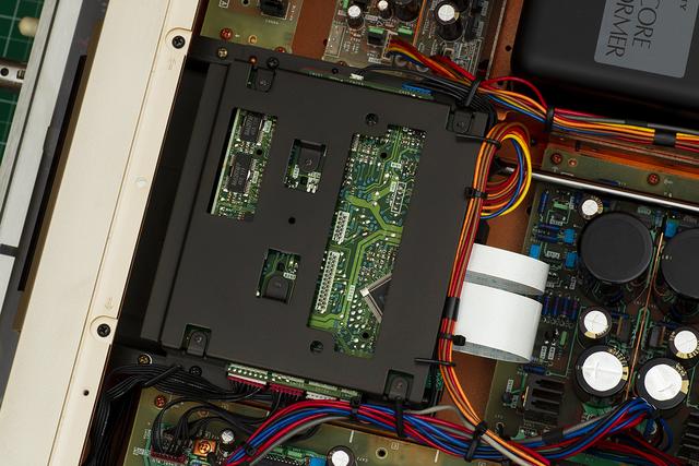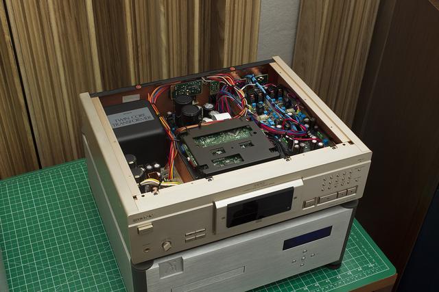 打开顶盖之后可以看到XA7ES内部满满当当的,日系机子一向都是堆料党,XA7ES在我用过的机子当中并不算夸张,先锋PD-T09才是个中翘楚。但XA7ES内部看起来比较凌乱,确实欠了一些旗舰机应有的感觉。