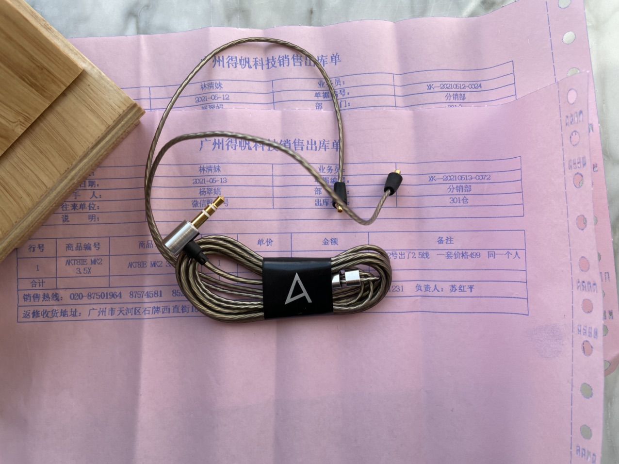 T8iE原线和艾利和中国总代理得帆科技买了一套,2.5mm平衡线留下自用了,3.5mm全新未拆,有得帆科技的票据;榭兰图3.5mm带麦线是自用榭兰图,带麦线全新未拆。