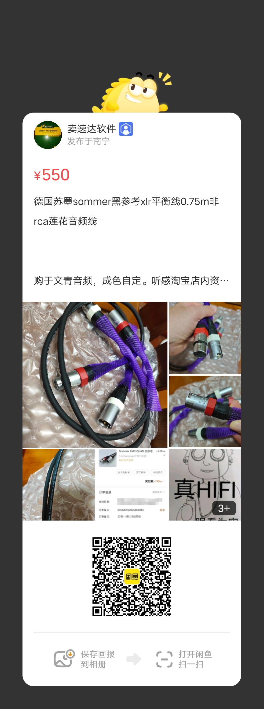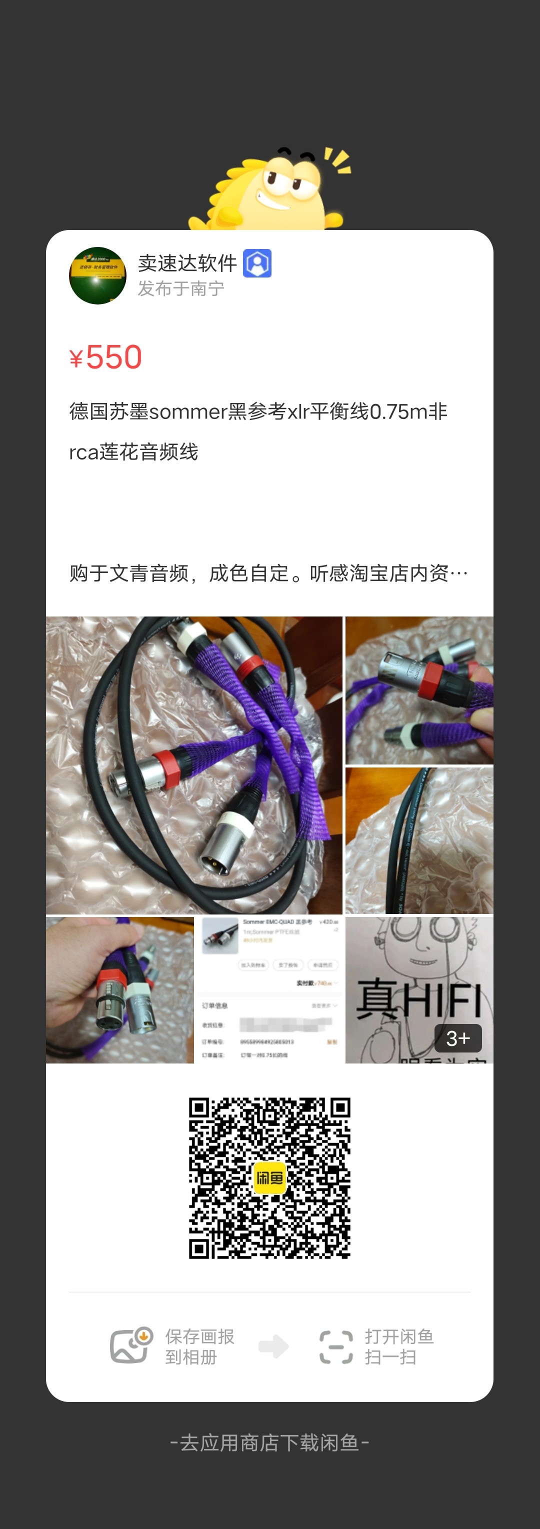 出德国苏墨sommer黑参考xlr平衡线一对!