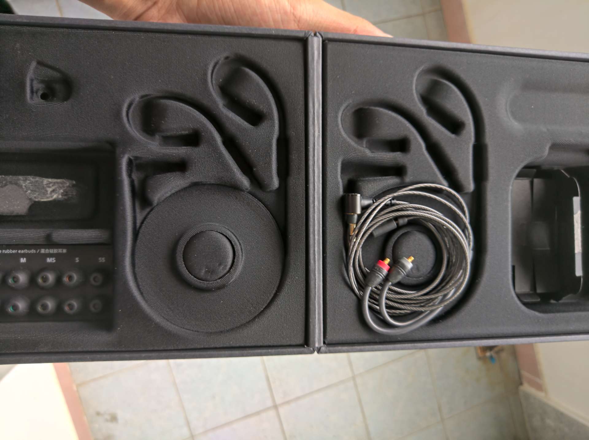 四动铁耳机。箱说没4.4线,没耳机包,送个别的牌子的耳机包,和三对final耳机套。耳机成色不定义了,自己看。左耳有划痕掉漆,带耳朵上看不出来,不细看看不出来,戴耳朵上也没有显露。右耳成色正常。声音不偏不破,无质量问题不退不换。成色问题说明了,不以成色做文章
