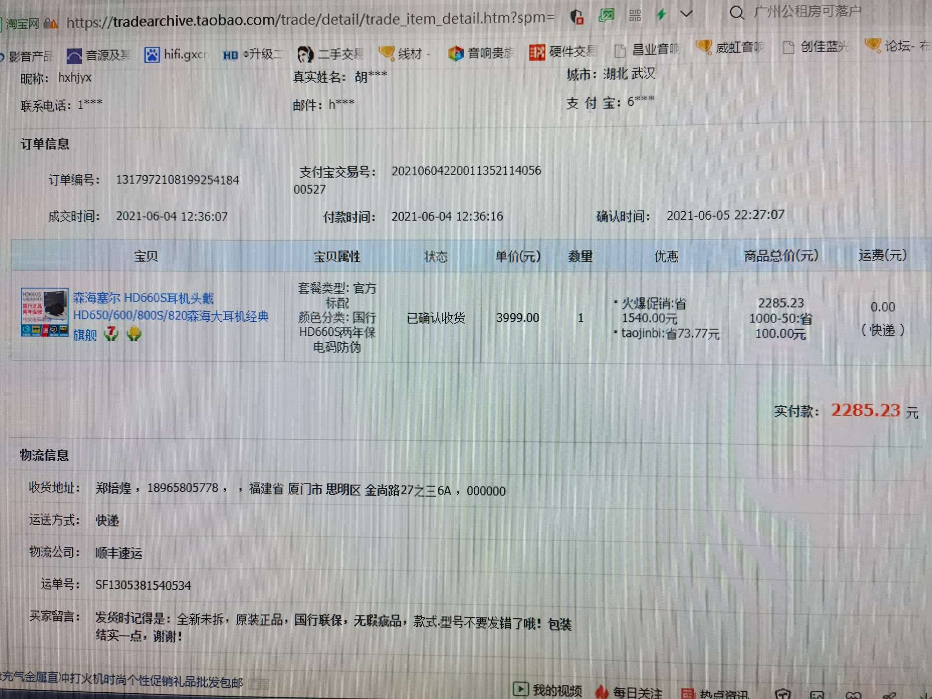 出森海塞尔HD660S耳机,罗马尼亚产,国行,今年618淘宝做活动买的全新行货,无磕无碰,品相基本全新(实物图,买来听不了二三十个小时,耳机还没煲开),就是外包装盒开口处轻微破损(看倒数第二张图),使用全部正常,无暗病,绝对保真,假一罚十,原包装.配件.说明书齐全.商家只发了电子版收据给我(看最后一张图),1800元包邮出(不接刀,要直接拍下),二手商品售出无质量不得退货,快递签收后不得退货,签收前请仔细检查。