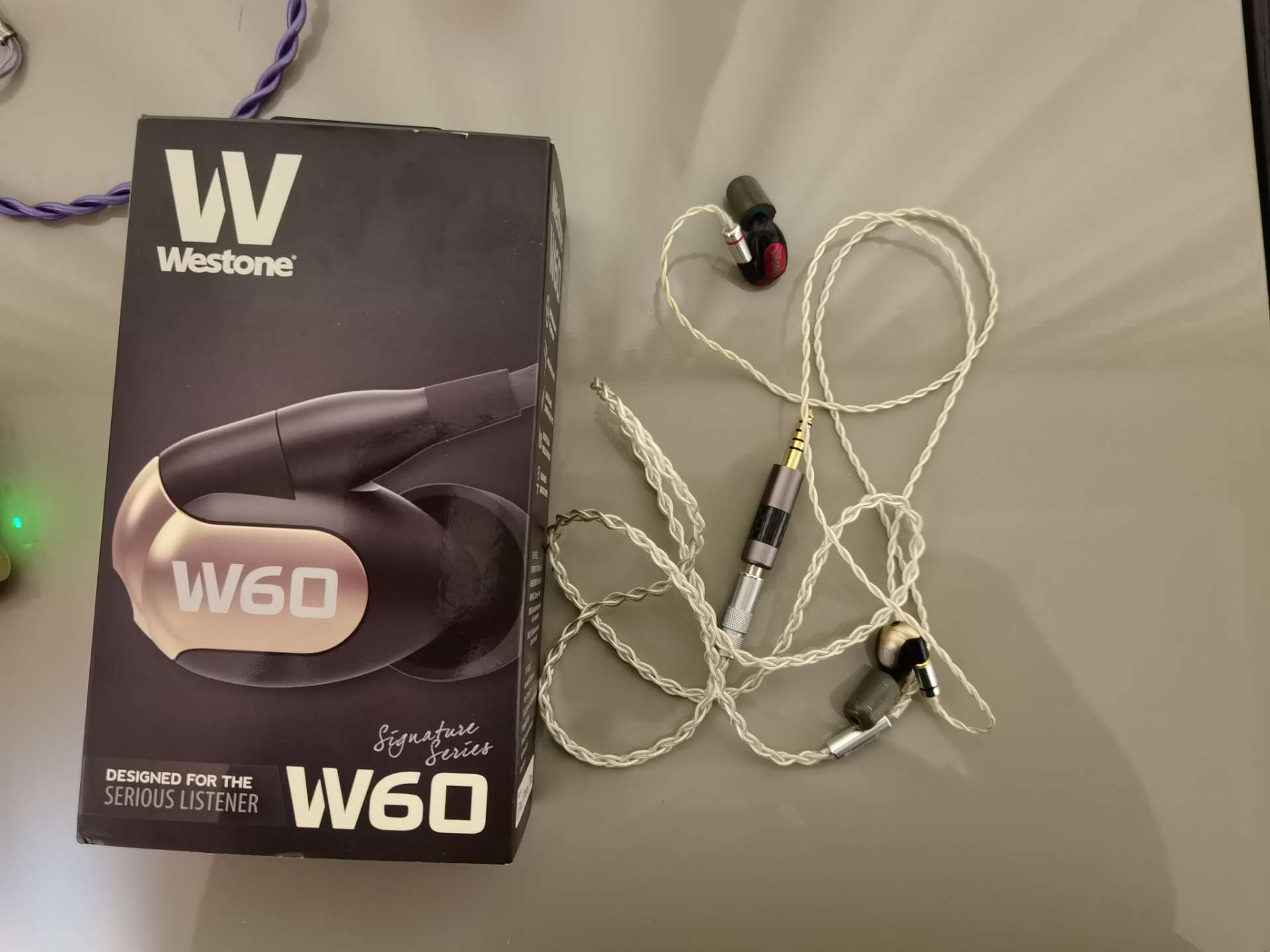 老版w60,箱说在,耳机跟包装码一致,少收纳盒跟麻花线但是有破晓家的单晶铜镀银线,耳机了碎了2对目前用一对金属壳。