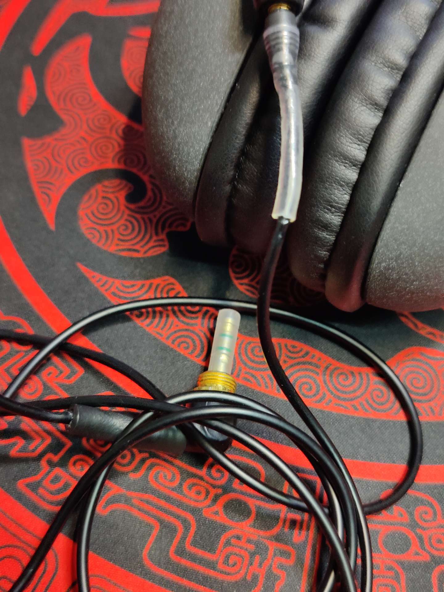 头梁边有个缺不影响使用,不注意看也不咋看得到。耳机线两头自己用热缩管加固了一下。配头梁套。300不包邮
