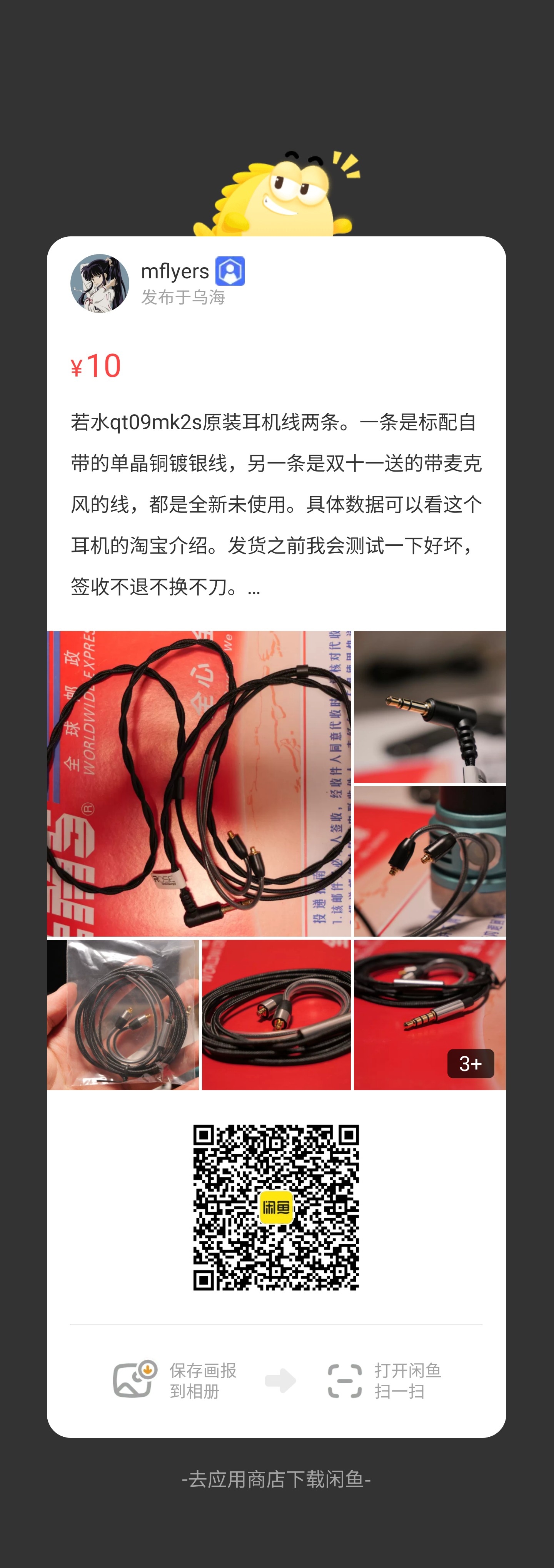 出若水qt09mk2s线材,一个单晶铜镀银,一个带麦线。都是全新