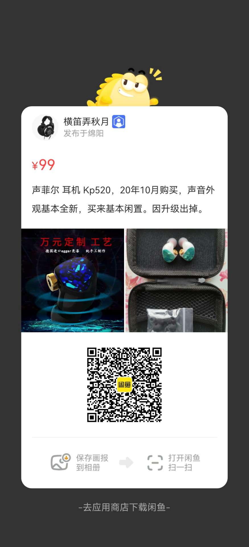 声菲尔 耳机 Kp520,20年10月购买,声音外观基本全新,买来基本闲置。因升级出掉。