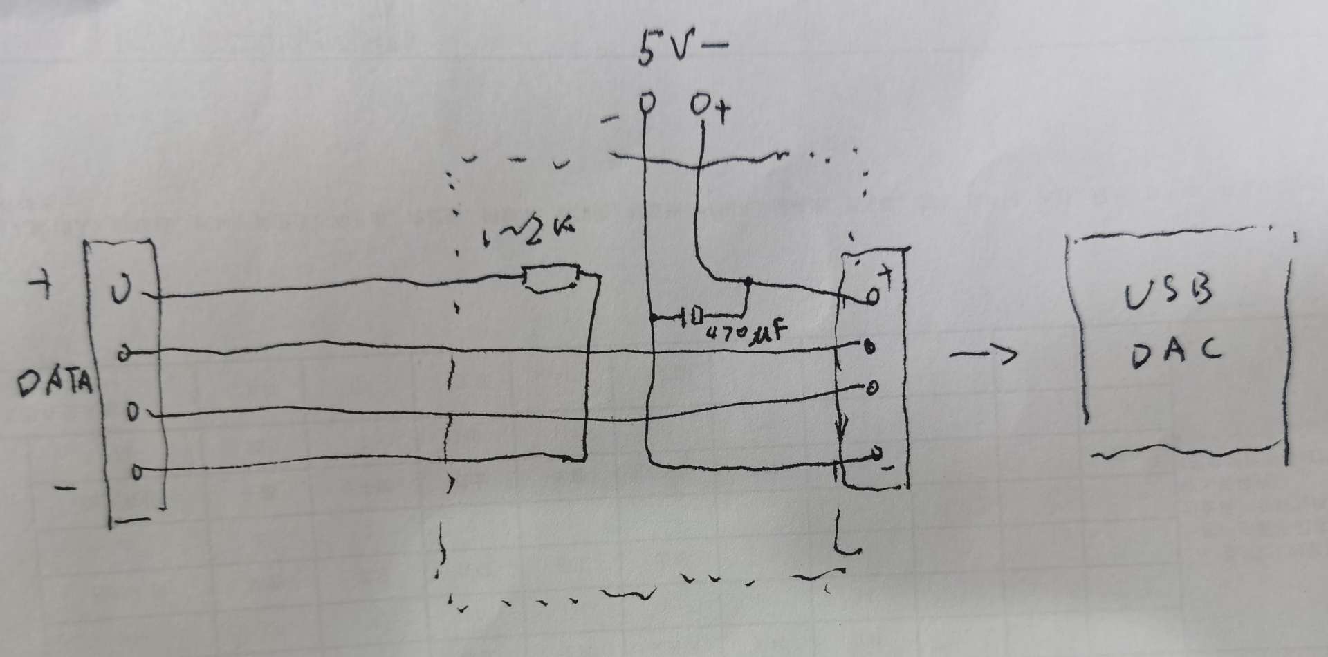 看到不少朋友提到USB供电品质不佳的问题,做了个简易设想。通过下图进行一个小改装,不知道是否可行?有经验的朋友,还请不吝赐教!