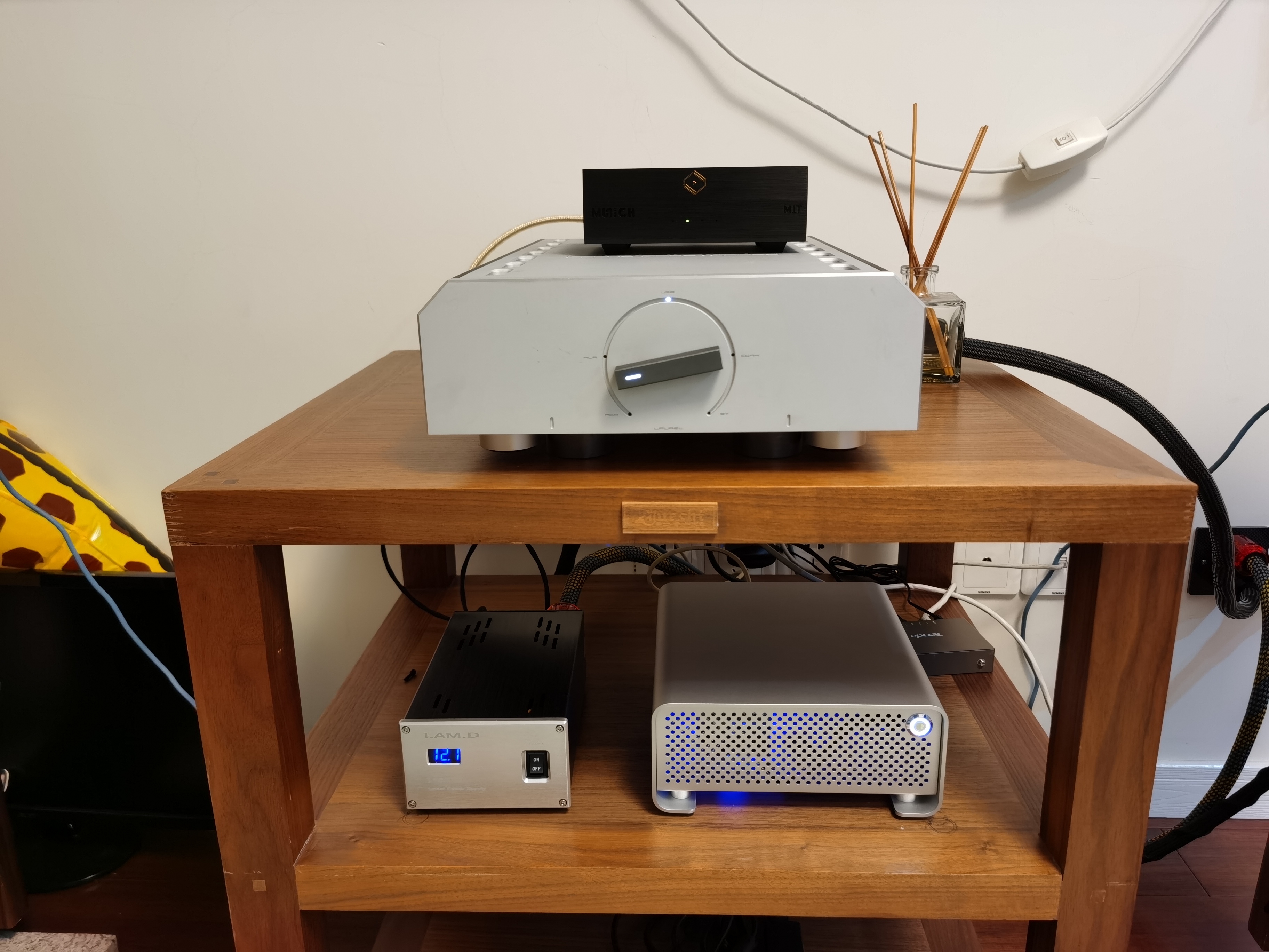 我原本是cd玩家,另一套主系统也是cd为主。最近自己建了一台daphile专机,j1900平台,使用线性电源供电,主机无风扇全静音配置,SSD本地系统,音乐文件都是走NAS,对比M1T这样的专业数播,声音上确实M1T更好,总体差距并不大,而且声音风格很相似。出声都是三频均衡直白声底,两者声场一致,M1T声音更干净,结项更清晰。