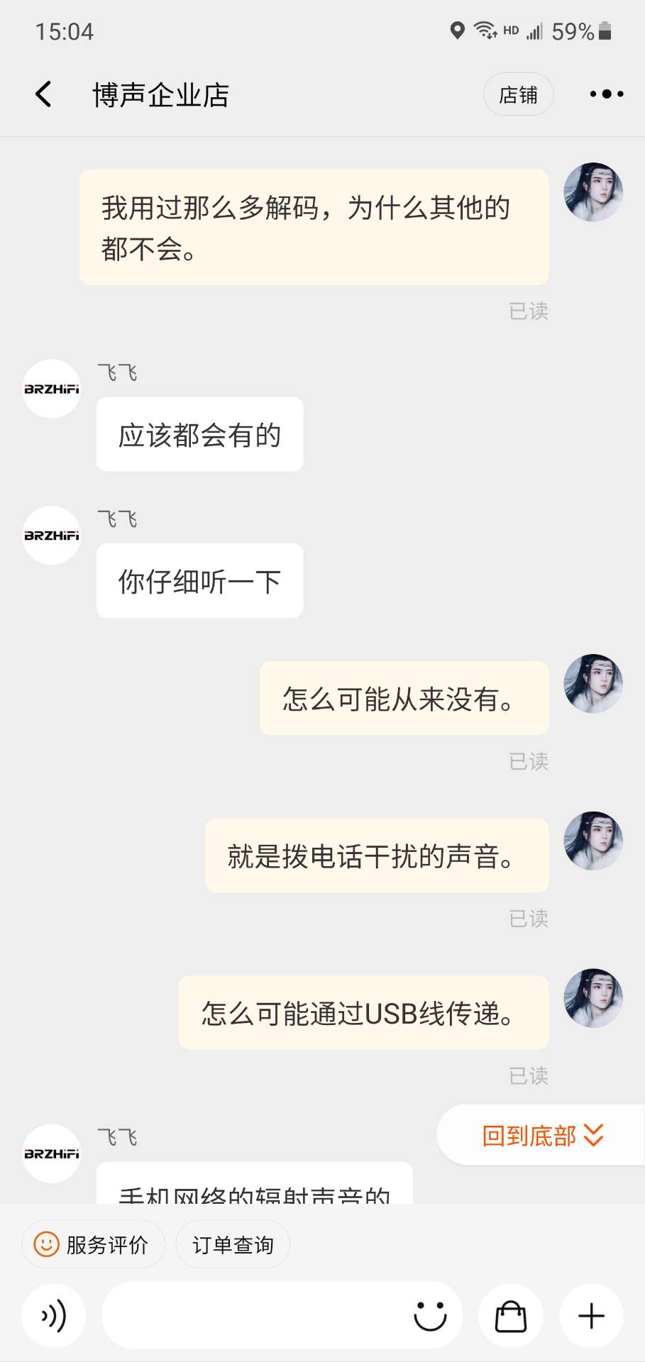 本人最近在住院。百无聊赖,就在京东上买了一个 HD 600。用手机听了几天觉得不过瘾,就想暂时买一个便宜的解码耳放凑合着听。在海鲜市场看了一圈,选了一个800多的博声nxc08,看参数还不错。到货之后接上手机usb,听了才几分钟,就多次听到耳机发出的手机拨号时噼噼啪啪的信号爆棚声,瞬间惊呆了。开始以为是播放app的问题,后来发现不放歌的时候,耳机也时不时传出阵阵的信号声,瞬间石化,这基本就不能正常听啊。我用过不下数十个解码器,几百到几万的都有,连接任何手机都从来没听到过这种声音,就连几十块的小尾巴解码器都不会有这样的干扰声。到淘宝问客服,客服居然回答说是正常现象,还说所有的解码器都会这样,简直哭笑不得。马上联系卖家退货了。再次感叹,这些国产机器不要看参数标的多好多高,尼玛的连基本的抗干扰信号屏蔽都做不好,正常听歌都做不到,更别说hifi了。和卖家交涉卖家还很不高兴的说自己没用过手机只用电脑没有这样的现象,还赌咒的说他的手机绝对不会有这样的问题。。尼玛商家都认了,还在这里犟。我是不知道这些国产货是些什么玩意,连基本功能都做不好还敢拿出来卖。从今以后还是老老实实买国外的机器吧。