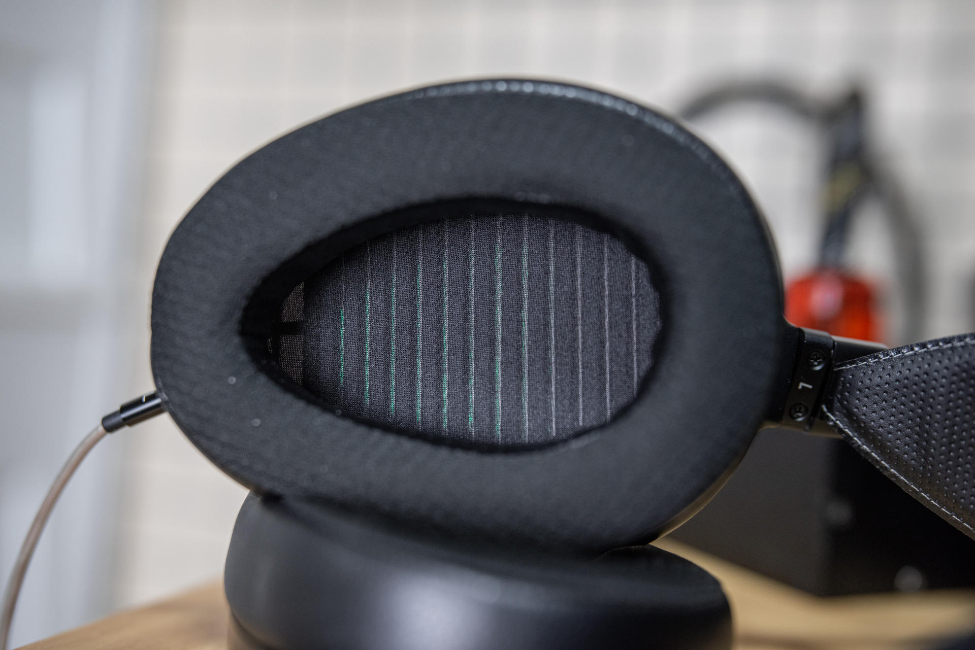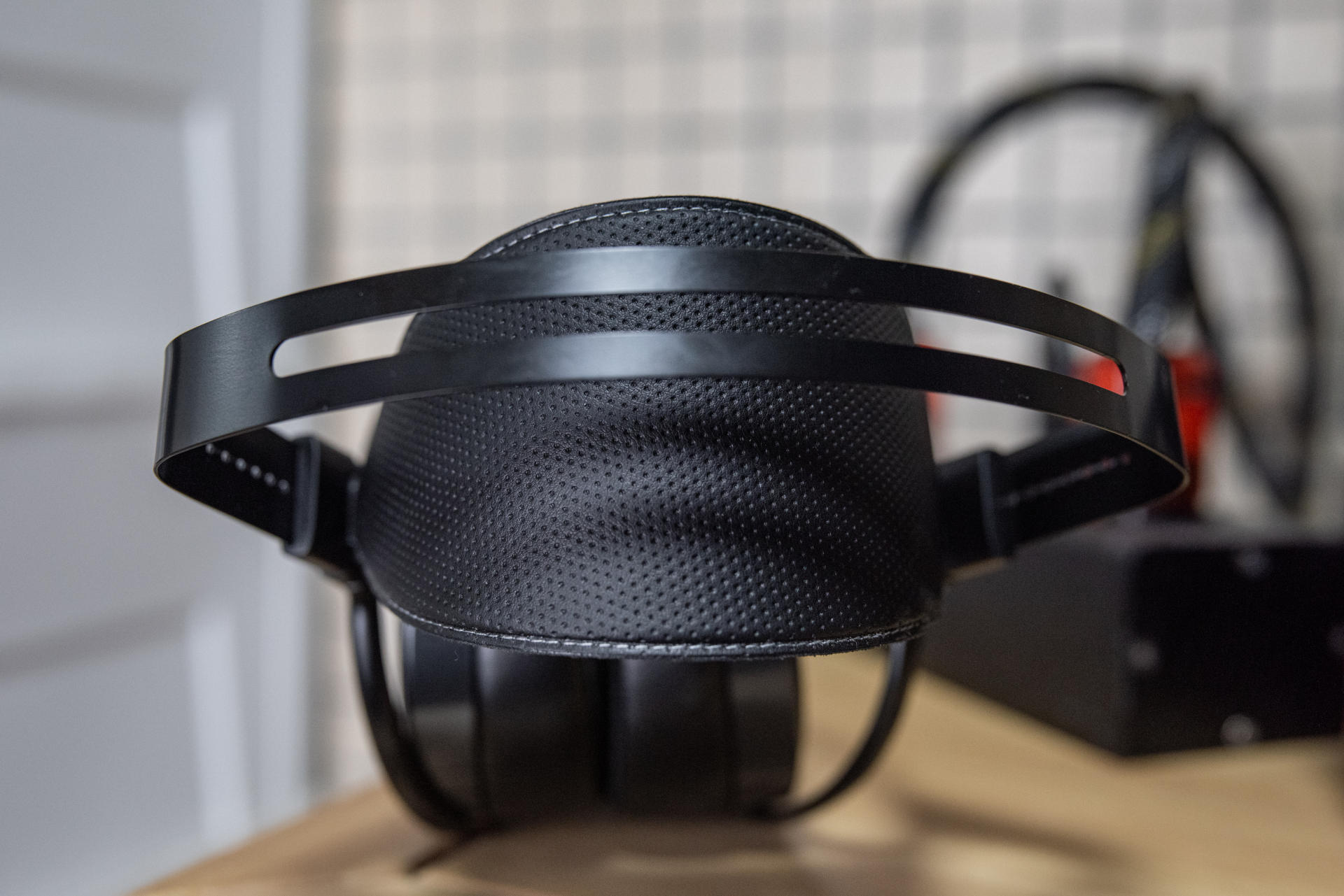 相对来说,Arya隐形磁体版则是Arya录音师版的升级,性价比要更为爆表,是SUSVARA“隐形磁体”配置的技术下放,有点像HE400隐形磁体版之于HE400和DEVA Pro之于DEVA。但值得肯定的是,Arya隐形磁体版仍然传承了我最希望拥有的几个配置,其一就是舒适度,毕竟SUNDARA、HE400系列不同,Arya隐形磁体版和HE1000系列一样的非对称全尺寸腔体是我最喜欢的,头梁宽广,佩戴起来完全包裹耳朵,整体非常舒适。另外,这款耳机的重量控制在404g,虽然比起自家HE400等产品还是略重一点,但和HE1000相比对脖子要更友好和轻松舒适一些。