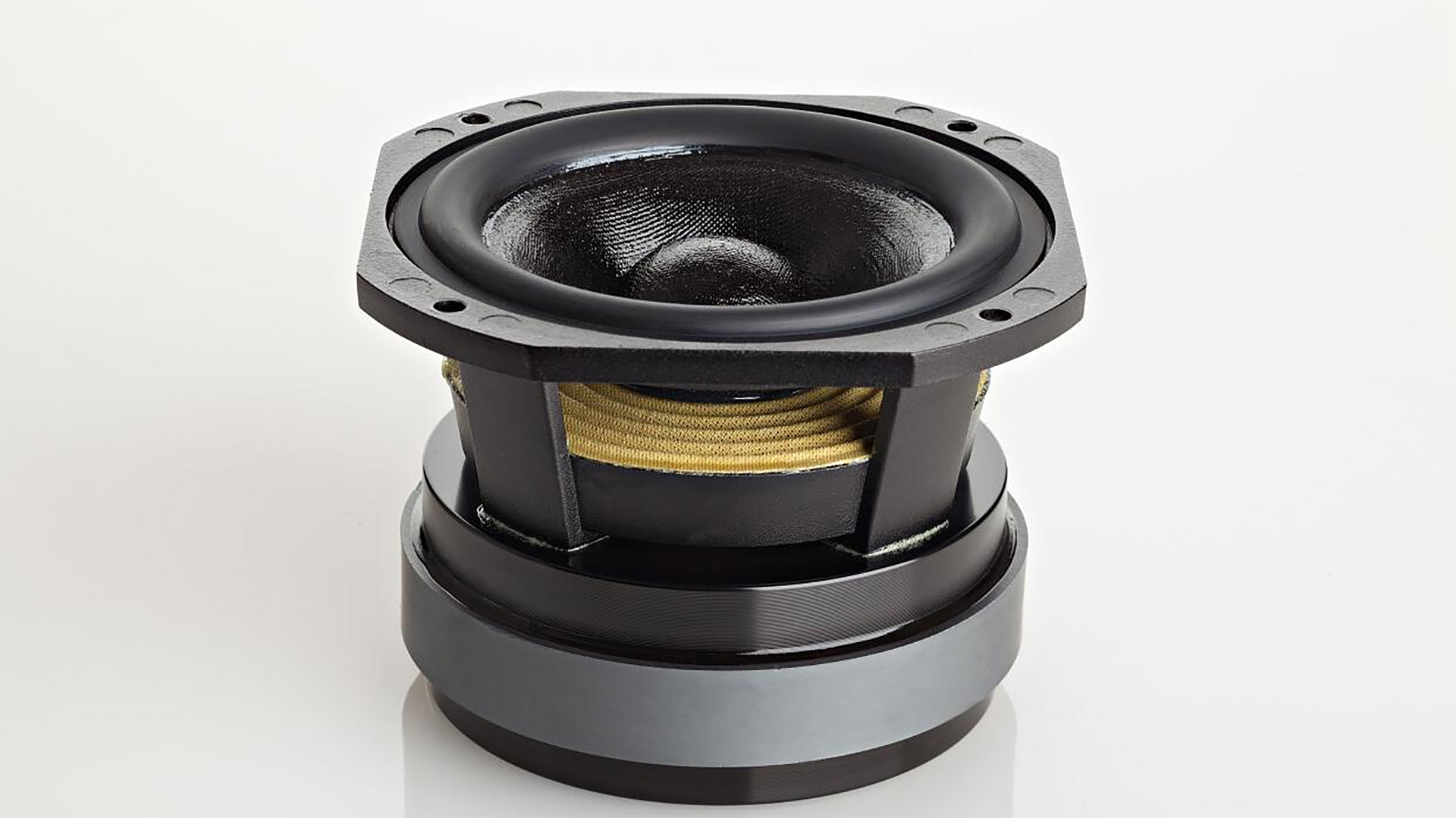 125MM的低音单元乍看有些ATC驰名天下的馒头中音的错觉,振膜表面涂上了略带黏性的特殊阻尼物质。我从ATC官网下载了这张低音单元的图片,可以看到它的磁铁结构非常威武,尽管直径只有大约5英寸,但重量却达到了3.5KG,其性能可想而知。