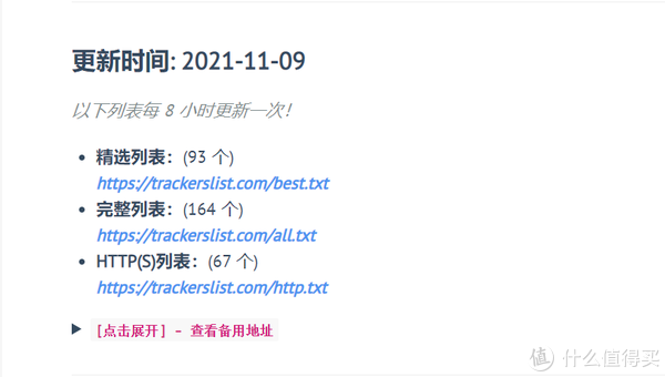 (这个网站还在页面下方分享了几个其它也不错的 trackers 列表分享网站)
