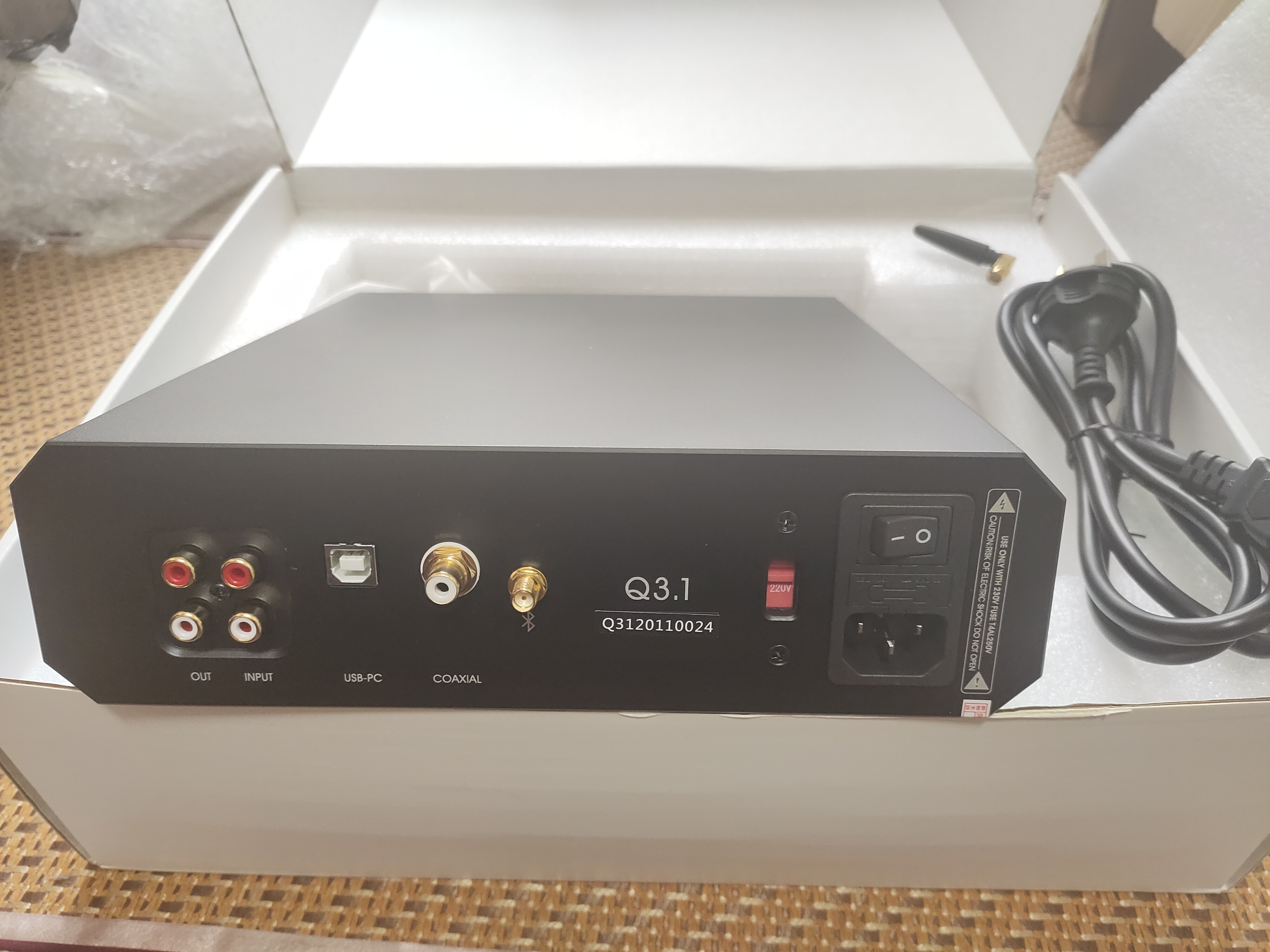 一.原创opa3.1:外观全黑色cnc铝壳,25*25*7cm左右算体积中等重量估计有5kg左右,设计观感一般,傻不算大黑有点粗的样子.对比前代q2.1的ak4490,新的采用9038q2m解码,然后去掉了功放口增加了一个4.4平衡输出,除了耳放参数推力更大其余功能配置几乎一样.dsd蓝牙aux输入rca输出同轴usb(无光纤)输入,可以作为一体机或者纯解码又或者纯耳放使用.下面重点讲一下实际遇到的问题:
