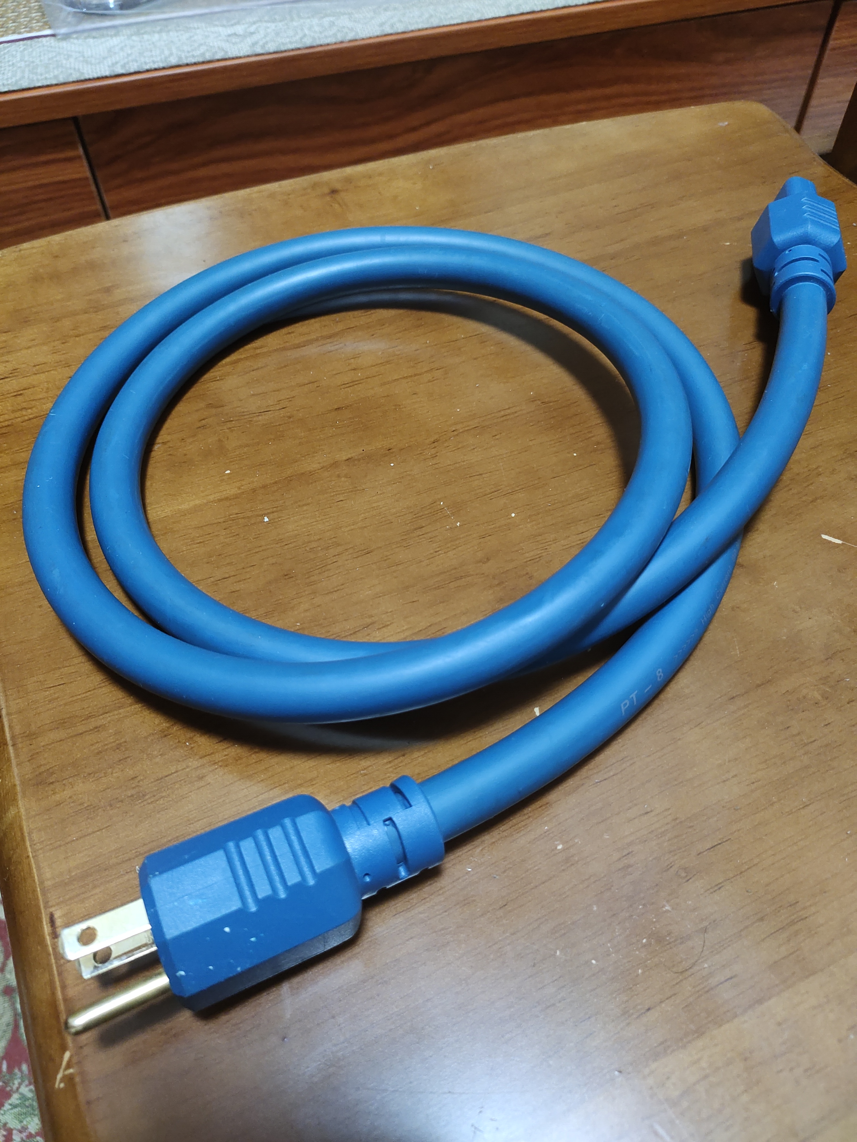 pt8外观全蓝塑料感强,插头镀金美标,线身柔软线芯3*2.5平方.看官方介绍我觉得设计上并没有什么特别之处,估计是国产代工线.声音走向略偏中低频,横向声场不大,低频凝聚扎实总体三频中正乐感和音乐味不错,只是动态和声场不够开阔缺少一点大气.