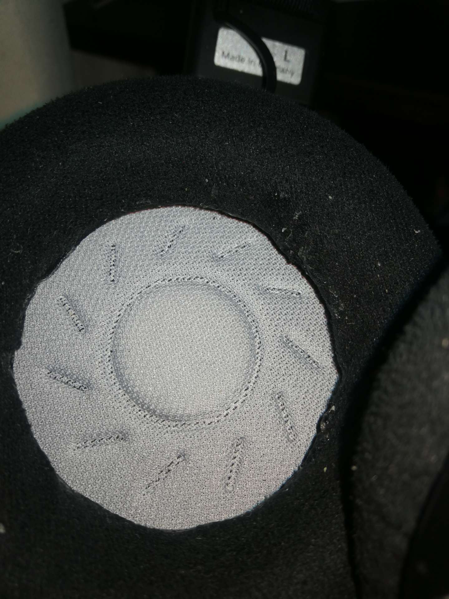事情的经过是这样的,耳机的海绵垫老化掉沫了,于是买了一副海绵垫(基本与原装海绵垫一模一样),但卖家还附赠了一副这个海绵垫,与90海绵垫尺寸一样,我查了下,一时也没找到这个海绵垫是拜亚哪个耳机用的。就先换上了原装的海绵垫。但是心里一直有个声音,这个新耳罩造型奇怪,中间加厚加密,旁边还有几道螺旋排列的折子,不知道换上是什么效果。当时心里有点不情愿,因为拆一次,伤耳罩,特别是自己工具和技术不好,撬那个锁紧圈时,有好大的印子。但是今天起得早,还是没忍住,拆换了,一换上,对人声的改变居然有如此奇效,值了!