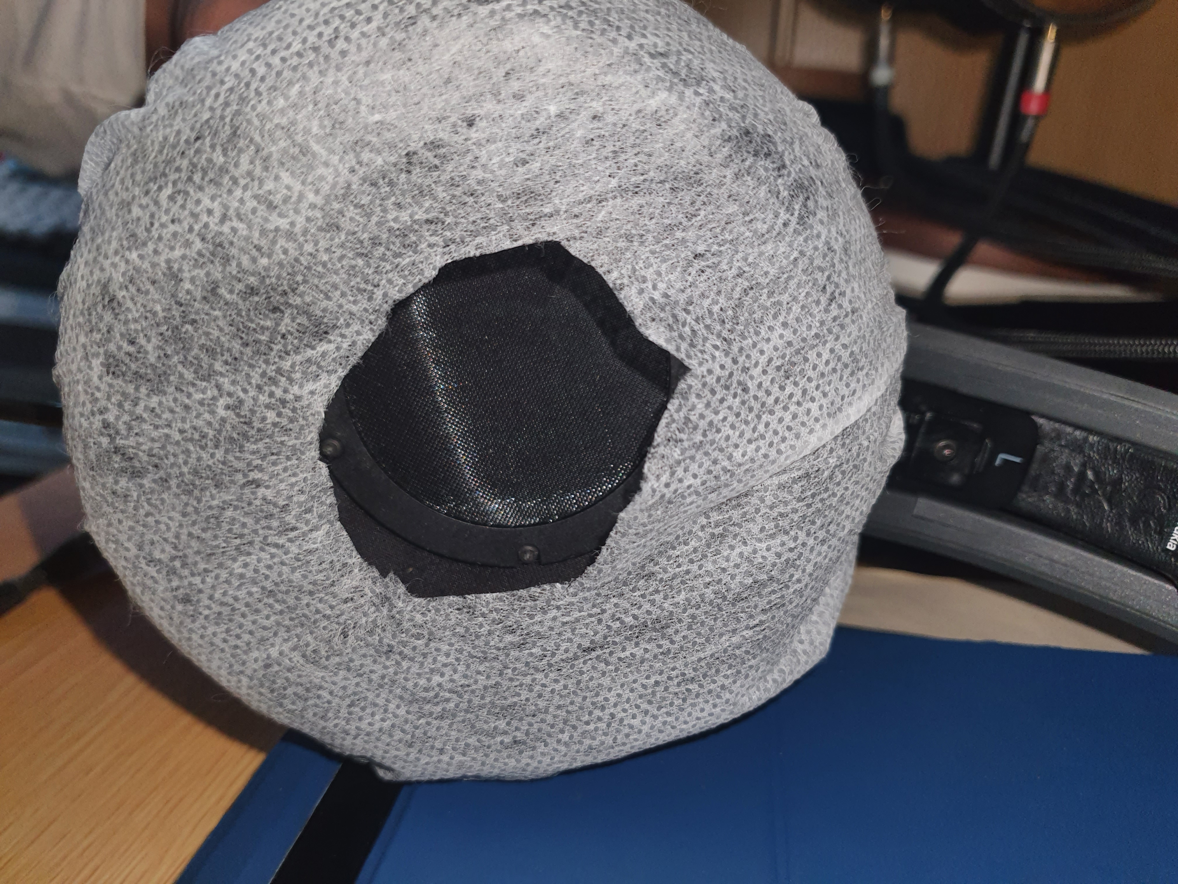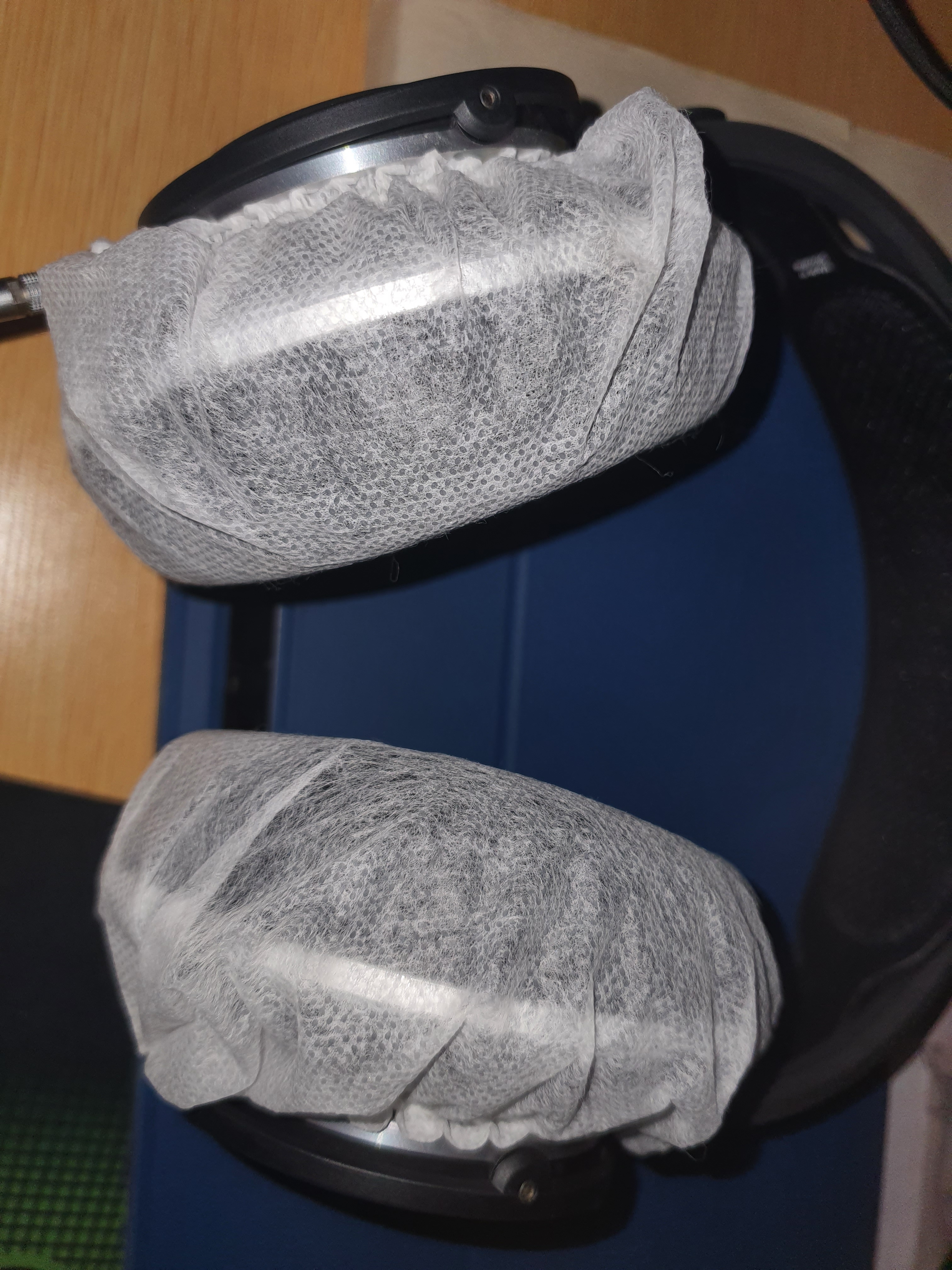 可购买网吧使用的一次性保护套,非常非常薄,非常透音,对音质无损。套上后拿剪刀剪出耳朵大小的孔。几分钱几毛钱一对。