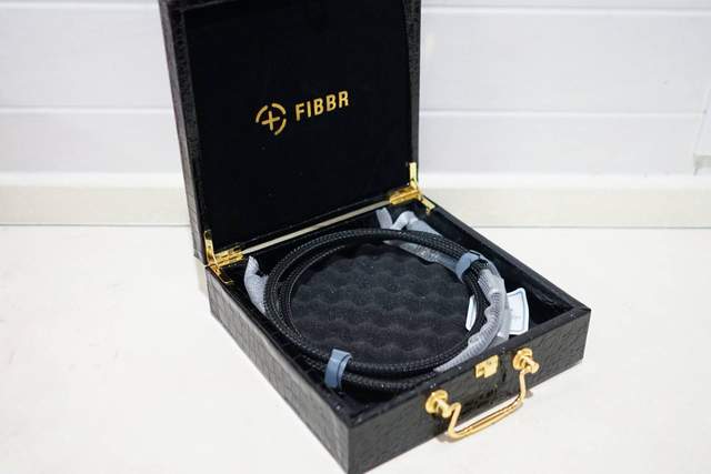 包装还是非常奢华的,有一个皮质的收纳盒,正面的金色FIBBR字样闪闪发光,产品的包装是用户第一眼看见的,FIBBR高纯度镀银数字同轴音频线的包装绝对给人高大上的逼格。