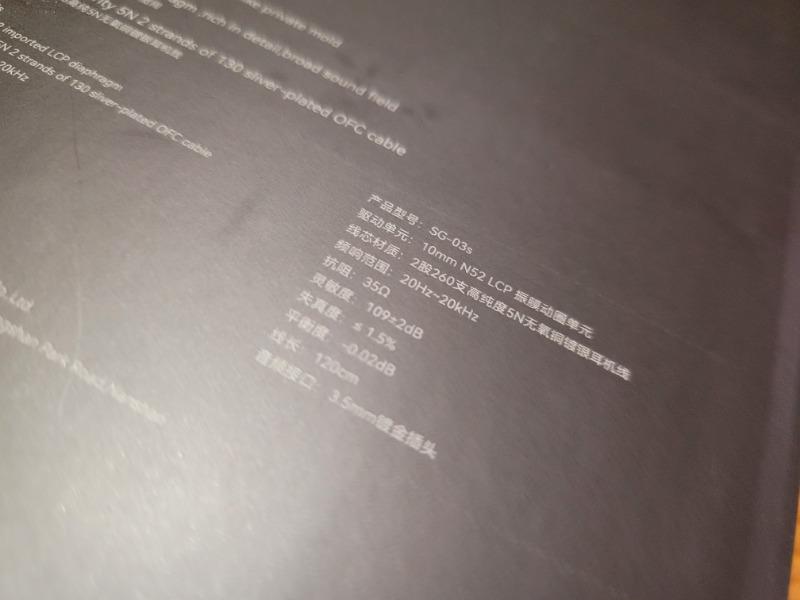 在实际的体验过程中,首先能感受到的是SG-03s的灵敏度表现非常不错,前端是不挑剔的,便于日常使用,手机直推或者加个小尾巴转接头之类的都能有很好的表现,不过作为LCP振膜的制成品,同样材质的前辈,一代经典神塞EXK可是有着需要煲机一万小时的传说,当然SG-03s不至于这么夸张,听几天就好了。