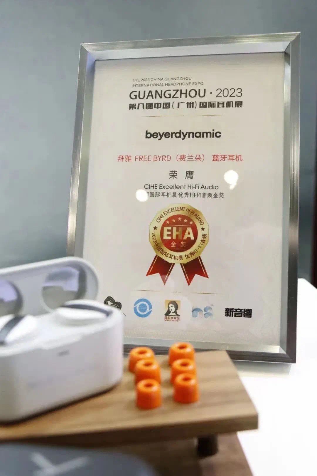 颁奖典礼上,广州高达尚商贸有限公司荣幸获得了中国优秀耳机经销商称号,而我们总代理的拜雅首款真无线耳机FREE BYRD(费兰朵)则受到广大消费者的认可,获得了中国国际耳机展优秀Hi-Fi音频金奖。