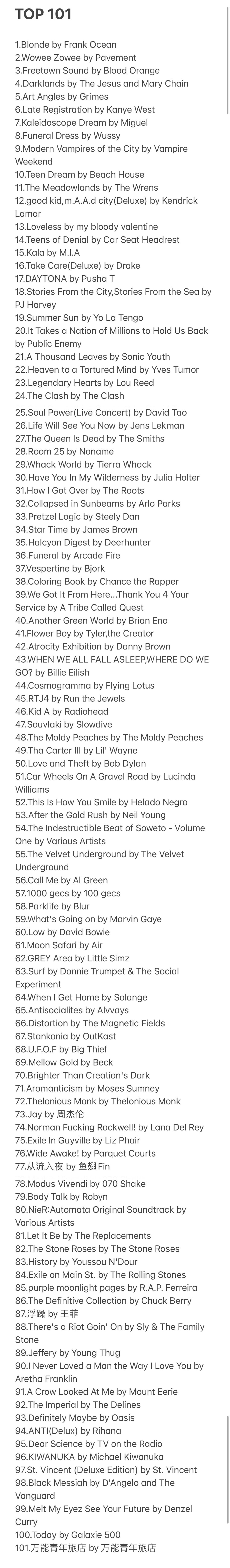 听过的东西印象深浅总有差别,印象最深共鸣最强的曲目总能排出个先后,如果听啥都差不多只能说你挺可怜的 ...