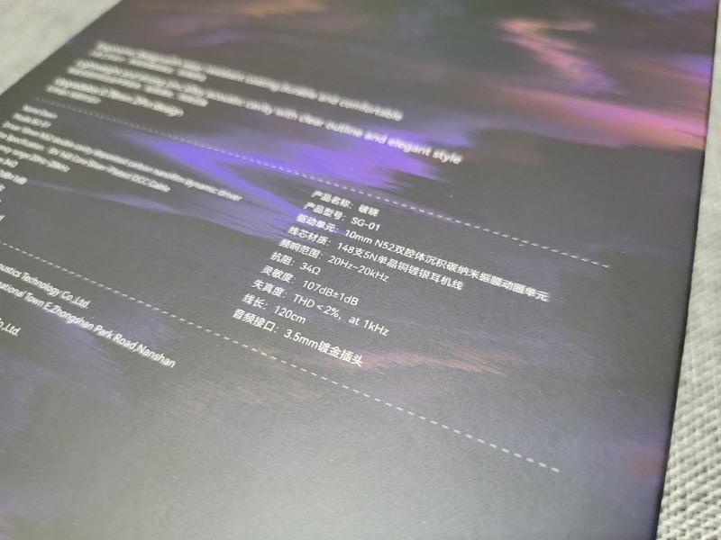 声音部分,升级之处体现在使用了全新的单元配置,虽然还是动圈设计,但已经把锐可余音自研的招牌技术,也就是旗舰级SG-07使用的相关黑科技进行实惠下放。性能达到巅峰的SG系列单元使用新一代稀土永磁材料,配合创新第二代沉积碳纳米管10mm大尺寸振膜,CCAW大黑音圈,以及双腔体高磁路铜镀金单元结构,硬件配置不可谓不强,基本从客观角度保证了一款好耳机所需的高刚性、低重量以及高磁通量,从而实现低失真,大动态,以及高灵敏度的声音表现。