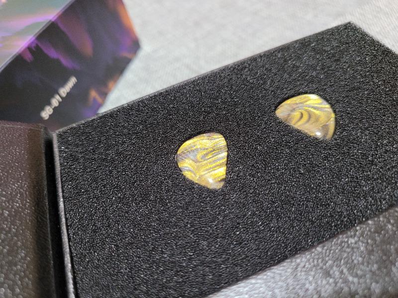 内盒取出开盖看到本体,果不其然,一改从前,之前两代常见的通体金属风格,升级同步到了自家高价耳塞系列才有用到的手绘流沙面板,当然为保耐用性,腔体仍然使用金属,做工细节相当过硬,接缝处丝滑流畅,无毛刺,无塑料感。