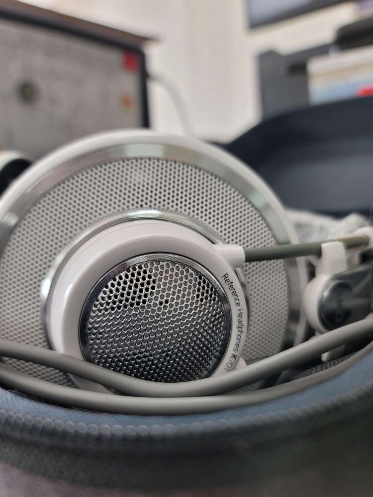 04849,全新库存机,时间太久,耳罩内的填充海绵全部风化,发粘,破碎,还好AK哥有支K701,耳罩通用,下午让店家补发一对全新耳罩