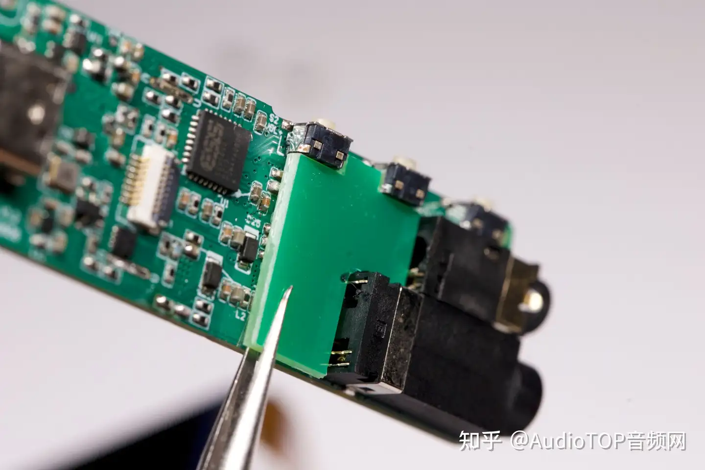 耳机插座采用了破板下沉方式的安装。这方面大家可能不太留意,其实4.4插座是小尾巴产品中最厚的一个零件,也是让小尾巴变厚的元凶。把它的高度压缩,小尾巴才能更薄。