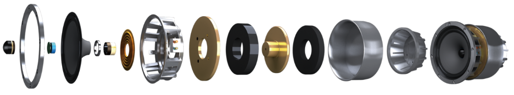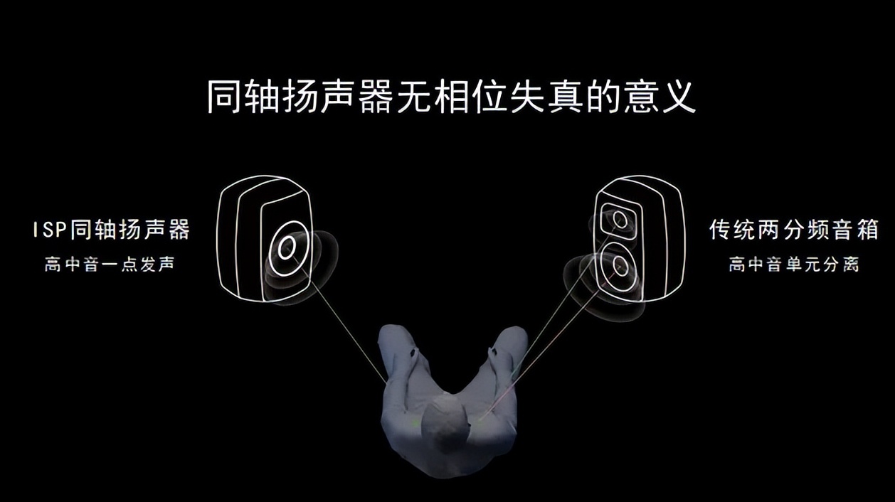 何为点声源呢?就是让高音和中音通过一个点发声。而想要实现高中音一点发声,就必须让高音和中音嵌套在同一轴线上,实现共点发声。这就是同轴扬声器的精妙之处。