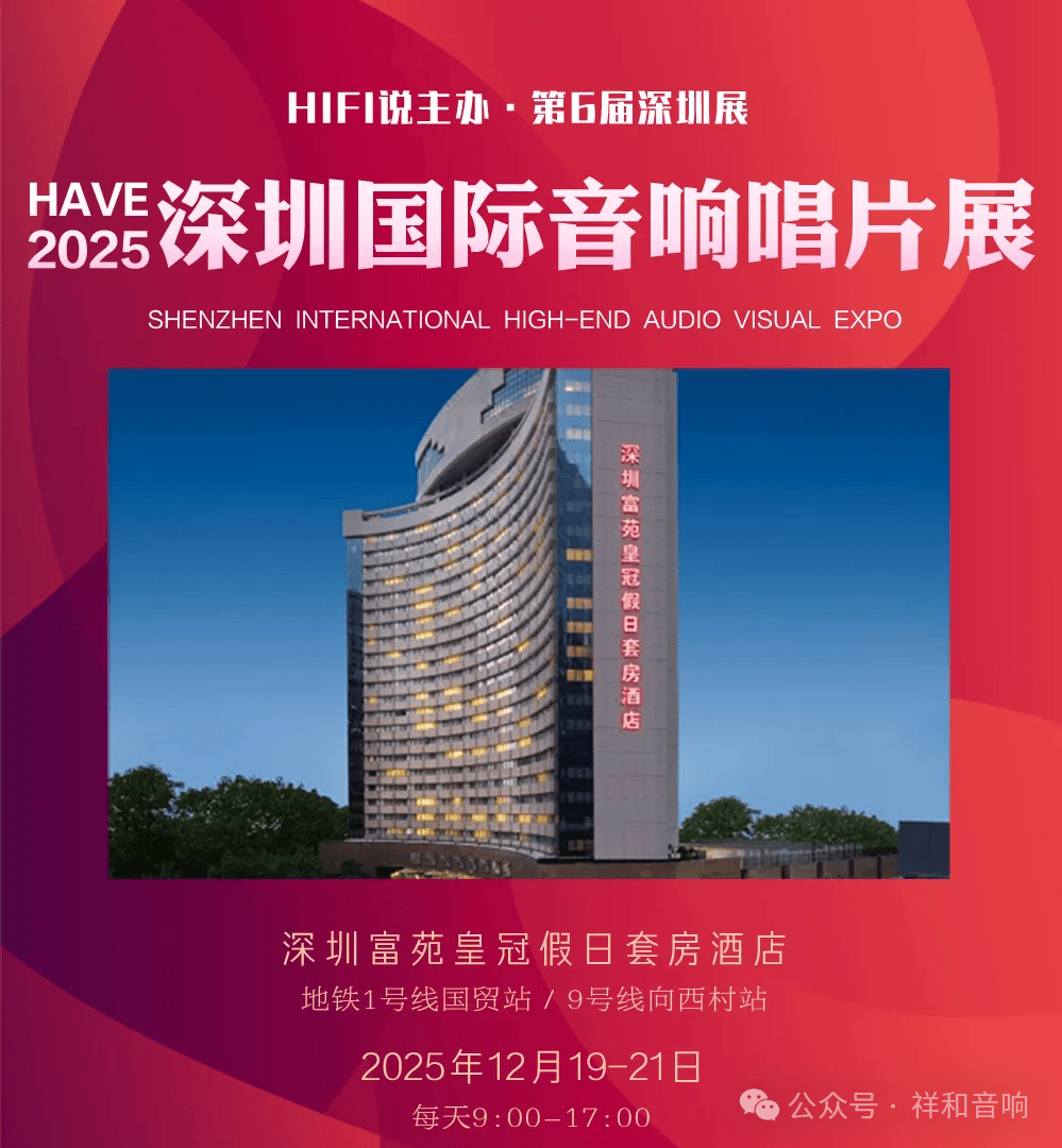第六届 HAVE 深圳音响展,将于 2025 年 12 月 19—21 日,在深圳富苑皇冠假日套房酒店隆重举办,本次展会 Cayin 将携年度重磅产品旗舰前后级惊艳亮相 3F【杜鹃一厅】展房,诚邀各界影音同好莅临,共赴这场音乐盛宴。