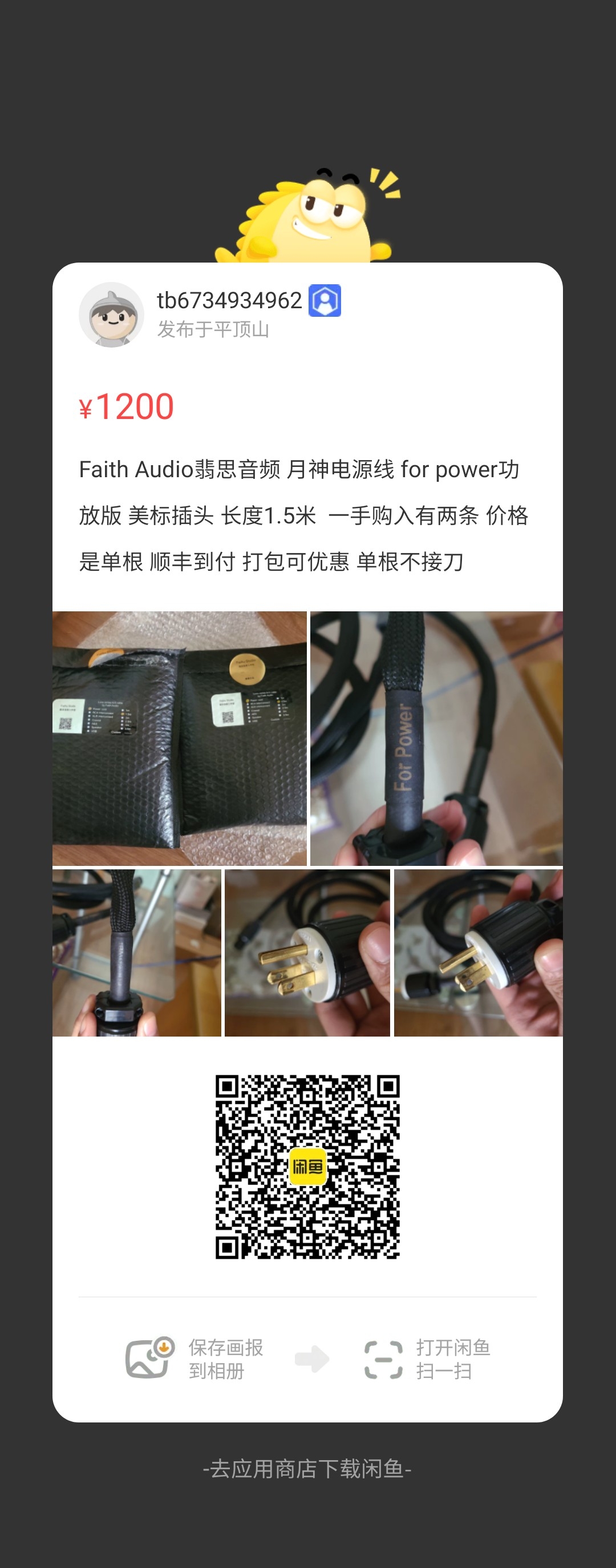 因为设备全都上墙了,排插和总线都闲置了 都是本人自用线材 白版之前强力推荐的电源线 声音中性耐听素质千元少有的适合总线和功放 成色还不错 其中有一条线的for power标记不清楚了 打包出2200顺丰到付 单根出也可 有感兴趣的可以鱼上找我