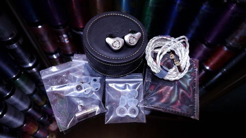 实物到手,包装风格还是挺科技风,摘封套抽出本体,上开盖还带布条支撑,弄得挺是回事,本体单元嵌入其中,以及我特别喜欢的皮质圆形收纳盒,手感相当不错。配件部分,耳套若干,擦拭布和6N单晶铜镀银配线,尾插可以更换自带4.4mm和3.5mm供选择,腔体采用0.78双针换线设计,可供后期换线升级。